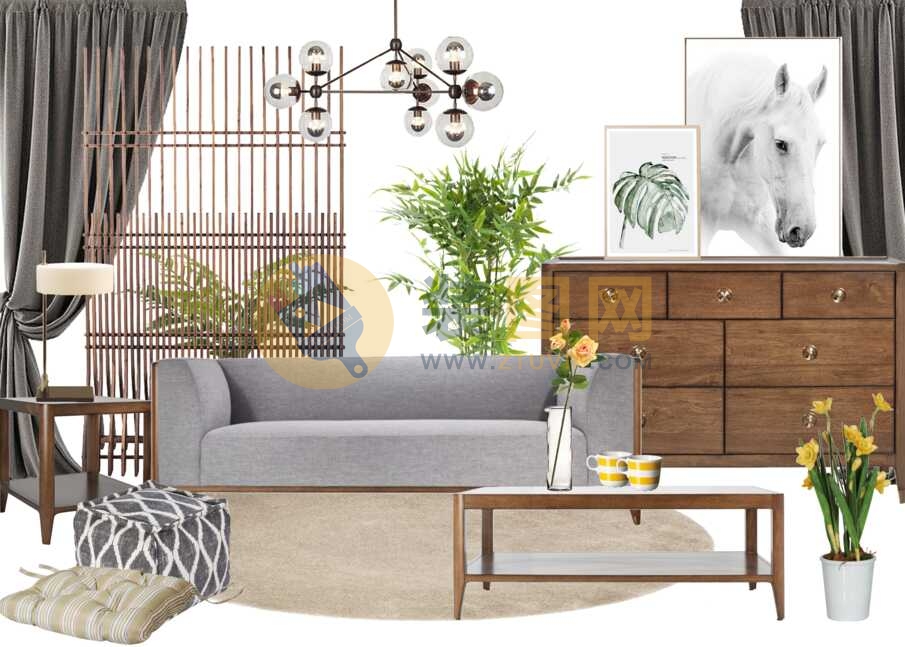 东方情调:优雅中式软装搭配PSD/PNG素材